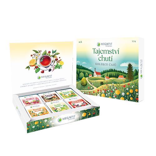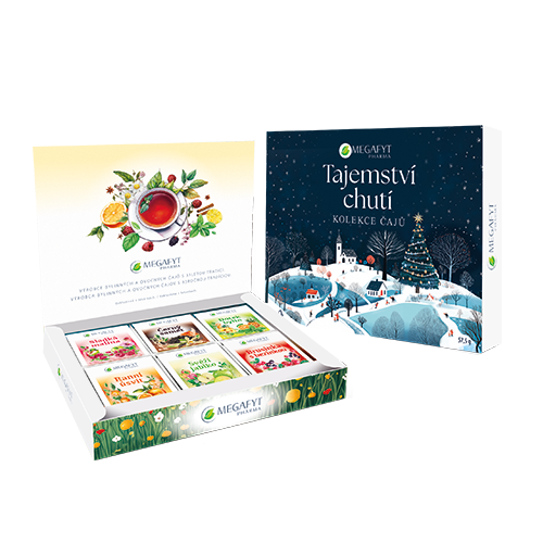 6 druhů čajových směsí – černého, zeleného a bylinného s různými příchutěmi.